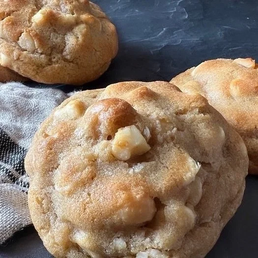 Oldie but goodie. This cookie is fluffy and chewy with plenty of white chocolate and macadamia nuts in every bite.